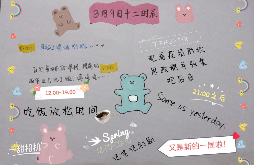 本次女生节的活动包括,第一项,为身边的女性(妈妈、姐姐、妹妹等)做一道菜或手工制作等,这项活动使在家的女大学生在疫情的特殊时期给家人送去了温暖,使得每一个小家庭变得更加温馨,更加充满爱。活动第二项,拍摄“疫情当下,舍小家为大家”的视频,这个活动要求学院学子介绍疫情中一线女性工作者的英雄事迹,介绍她们的故事等。拍摄的故事视频中有“试疫苗第一针”的陈薇院士、有“年过古稀仍奋战一线”的李兰娟院士、有“如今的我,曾经的你”的孙颖、有“舍小家,为大家”的李静……还有太多太多值得我们尊敬的英雄们。