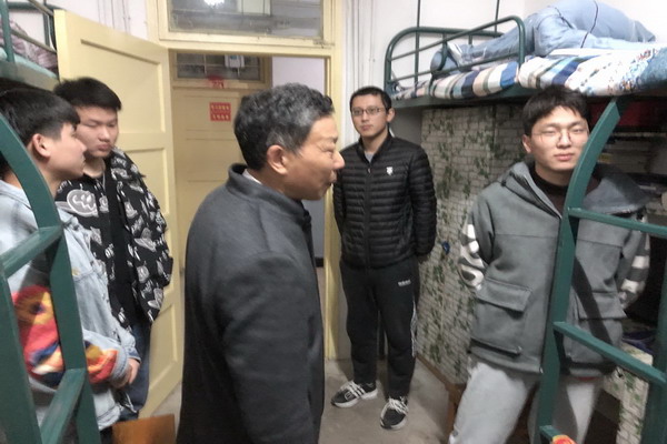 为进一步做好学生宿舍的安全管理工作,切实提高学生的宿舍文明和安全防范意识,3月10日,在机械工程学院党委副书记张程的组织下,开展了期初学生宿舍安全排查工作。副处级辅导员开金苗,辅导员王飞、孟凡生、张立亮参加排查工作,走访看望学生。