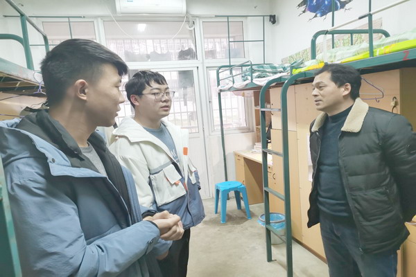 在走访过程中,张程与住宿学生进行了亲切地交流,向住宿学生了解了宿舍生活情况,当前的学习状态和未来学业规划,并给予相应的生活、学习建议。随后,他们对学生宿舍安全隐患进行了排查,并就寝室安全问题进行了强调。