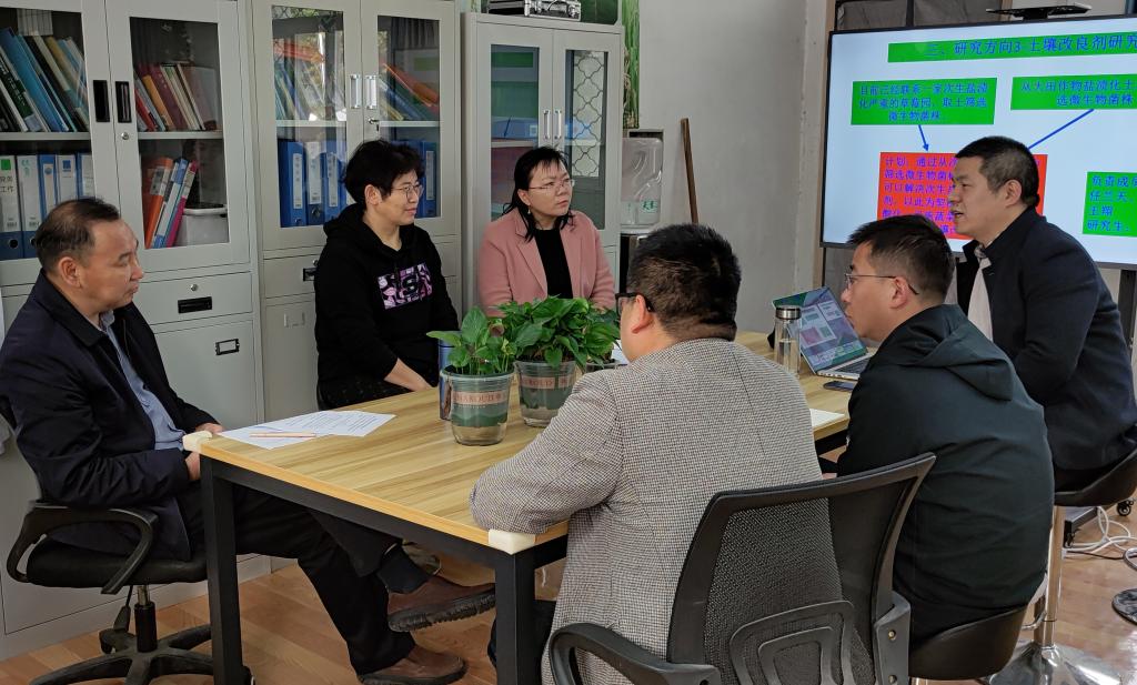 任兰天对吴文革到校交流表示热烈欢迎,并就农学系尤其是秸秆农业化利用团队及秸秆研究产业学院的基本情况进行了简要介绍,希望双方围绕“十四五”相关项目、奖励申报等加强合作。李文阳就农学院师资力量、小麦栽培生理等进行了介绍,希望双方发挥各自优势,强化合作。与会专业教师也纷纷发表了自己的看法。吴文革简要介绍了水稻所的研究状况,并就水稻育秧、水稻栽培、光合生理等方向进行了合作展望。