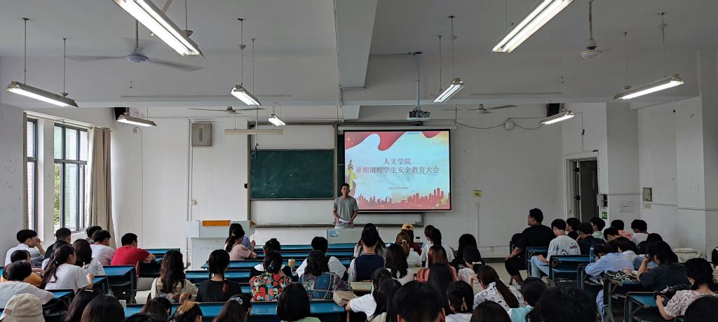 为加强学生安全意识,切实做好暑期留校学生住宿管理和服务工作,人文学院于7月8日下午,在新知楼A110教室召开了关于做好2021年暑假留校住宿学生管理工作会议,人文学院党委副书记李沙娜、全体辅导员、暑期留校生参加会议。会议由焦雪松主持。