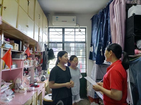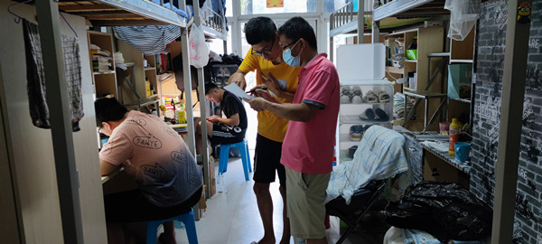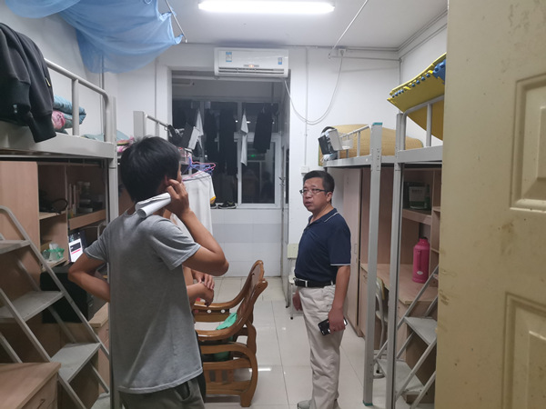 每到一个宿舍,老师们都提醒留校学生要信守留宿申请时的承诺,遵守学校相关规定,自觉落实留宿管理要求;严格落实学生宿舍“六个严禁”,注意个人卫生,保持宿舍干净整洁;不下水游泳、不到河湖水塘游玩;绷紧疫情防控之弦,严格遵守疫情防控要求,坚持“非必要不外出”,有事外出必先请假获批,外出主动做好个人防护。每到一个宿舍,老师们都提醒同学们要利用好暑期时间认真复习,为研究生初试取得好成绩奠定坚实基础。检查中,老师们发现个别宿舍存在安全隐患,对学生进行了批评教育并要求立即整改。