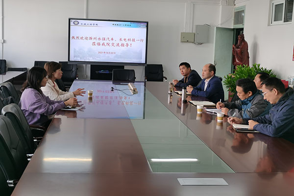 陈丰代表学院对王敬芳和王婷婷一行的到来表示热烈欢迎,对滁州永强汽车有限公司和长电科技(滁州)有限公司多年来积极招聘我院毕业生表示衷心感谢,并向两位来宾介绍了机械工程学院发展概况以及2022届毕业生和学院科研团队的相关情况,并表示优先推荐学生去永强、长电公司就业,全力推进与两家公司的科研合作。
