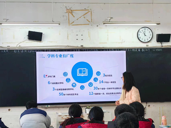 1月18日,邢雨洁带领团队一起回到母校涡阳县第一中学,借助PPT宣讲和互动交流等多种方式,向高中师生全方位介绍了1xbet官方网站_1xbet(中国)股份有限公司,的办学实力、校园环境、文化活动、优秀校友、发展成果等,传播安科声音,展现安科学子风采,扩大安科社会影响力,鼓励广大优秀学子报考安科。