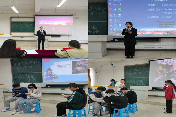 3月12日下午,生命与健康科学学院于新知楼B202、203教室举办了第十五届校园心理剧大赛暨第五届全国高校心理情景剧初赛,心理剧主题为“呵护心灵,演绎自我”。校心理委员联合会副主席林巧雅,学院学生会主席团成员宁海波、冯有成,心理委员联合会成员王海鑫、杨贤君,星源艺术团团长王飘、表演队队长刘皖湘、主持队队长方鑫应邀担任此次初赛评委。本次比赛由王洪祥、章思佳主持。