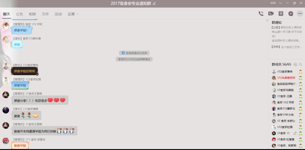 本次分享会由食品工程学院副处级辅导员开金苗主持,特别邀请食品质量与安全161班仇丽妹分享经验、答疑解惑,2017级食品质量与安全专业学生参与此次分享会。