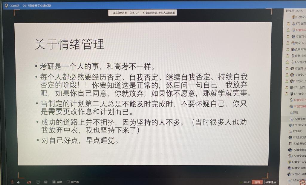“研途漫漫,求经索骥。没有松柏恒,难得雪中青。”本次“云分享”不仅为考研学习提供了交流和借鉴的平台,指引了前进方向,也帮助大家以积极乐观的心态迎接考研这一巨大挑战,披荆斩棘,实现梦想。(特约通讯员:赵传磊 审核:付光玺)