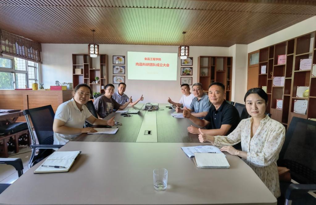 会上,会议正式宣布成立“肉品团队”,同时推选胡鹏丽为团队秘书。目前肉品团队有成员8名,其中教授或研究员2名,副教授2名,讲师3名,助教1名。从学历层次来看,拥有博士4名,硕士3名,学士1名。该团队成员吴晓伟是江淮杰出工匠、安徽省劳模创新大师,李景军是食品工程学院学科带头人、郑海波是安徽省畜禽产业技术体系岗位专家。目前该团队职称与学历层次较高,团队规模和质量在安徽省内高校肉类研究领域中具有较强的实力,但目前团队积累不足,知名度尚小,需要通过加强产学研合作和服务企业、服务社会,壮大团队的影响力。